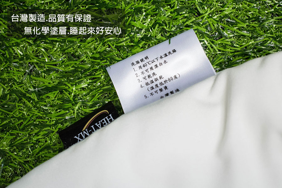 HEAT-MX新一代保溫棉,具有強韌的超細纖維結構,蓬鬆柔滑、伸展性佳,能耐受洗衣機的沖洗脫水也不會變形,還可以放進烘衣機烘乾,連自助洗衣店的商業用烘乾機也適用。
