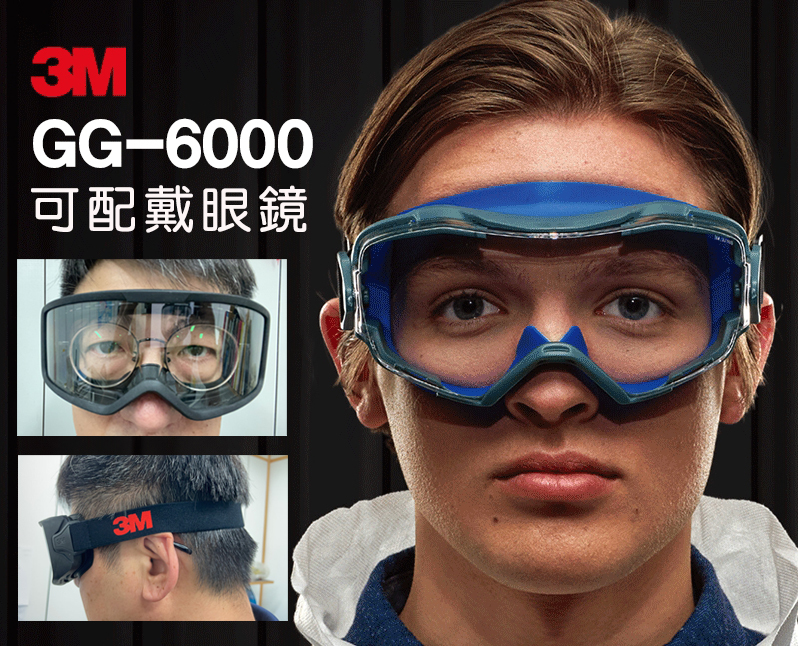 保護你的眼睛,從事化學作業更加安心!3M 抗刮防霧護目鏡 GG6001NSGAF (BLU) 是你最佳的選擇。