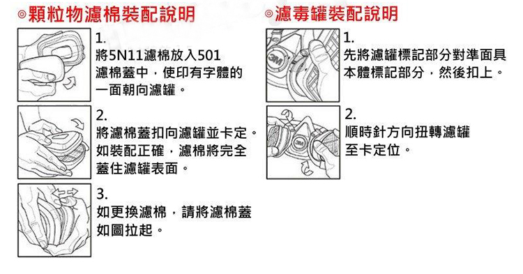 ˙ 需搭配雙罐式或全面式防毒面具使用