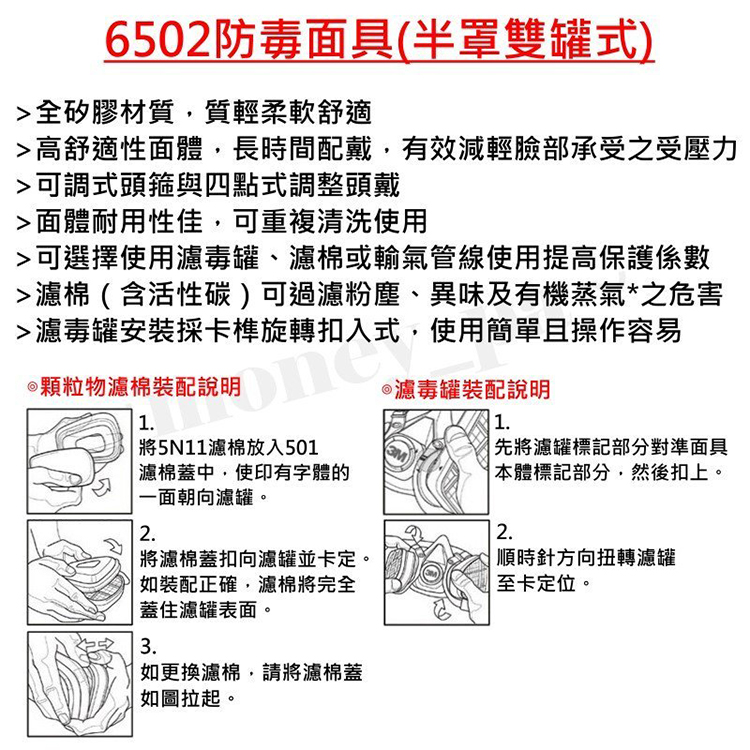 3M 6006 綜合氣體濾毒罐:可有效過濾有機、酸性、噴漆、農藥、甲醛、氨氣等。