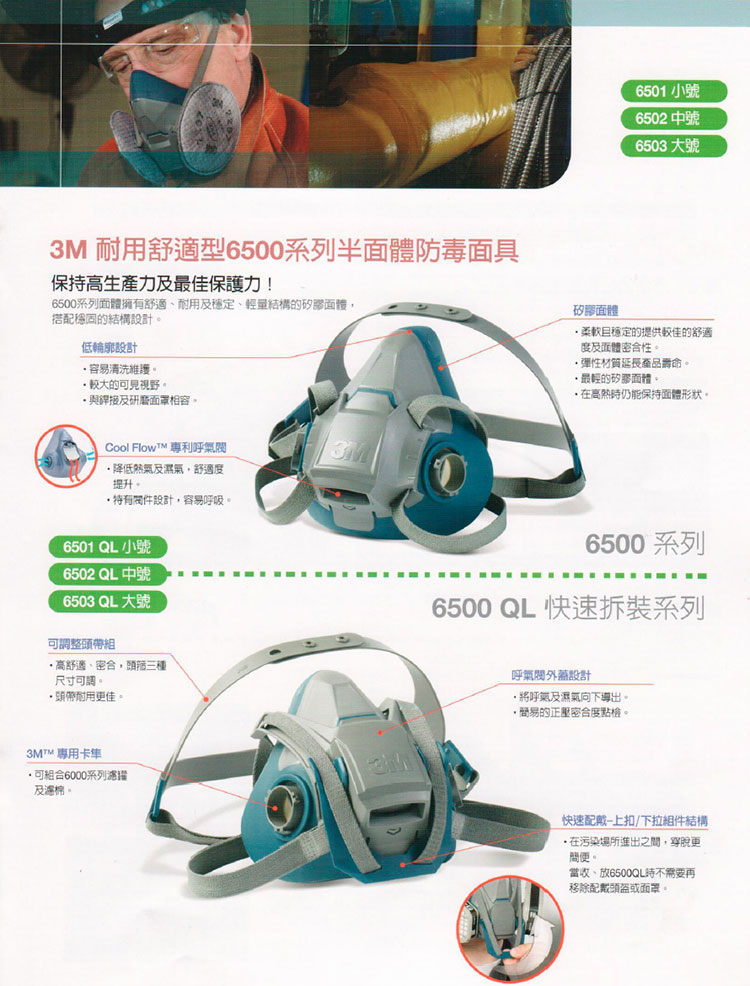 需搭配專用濾毒罐:3M 6001、3M 6002、3M 6003、3M 6004、3M 6006。