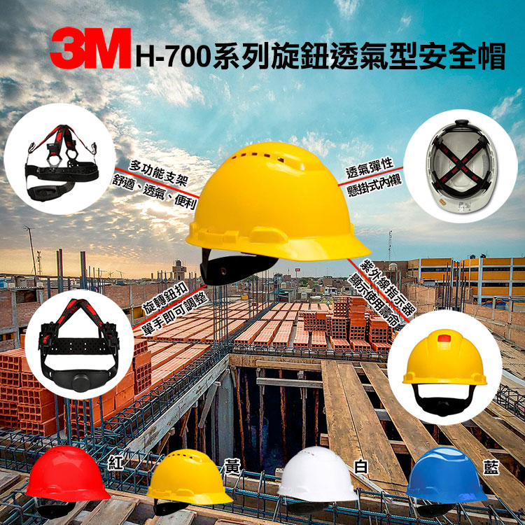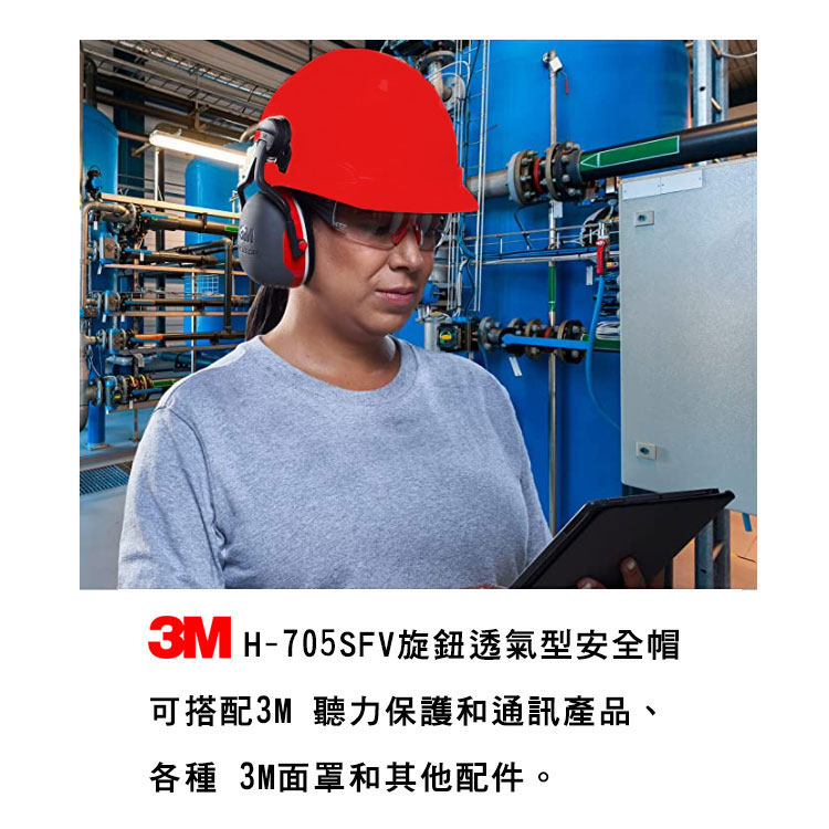 3M H-705SFV旋鈕透氣型安全帽 紫外線指示器 防護頭盔 外件插孔 適合工地 機房 搬運 機械操作 維修作業 紅色