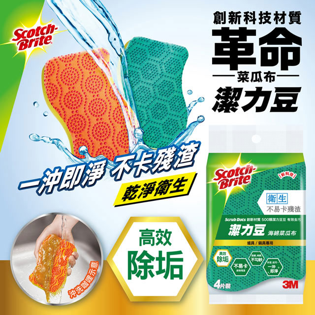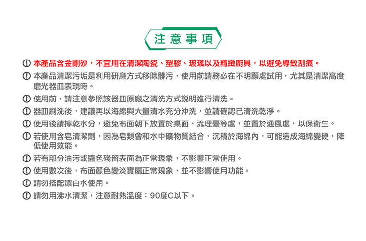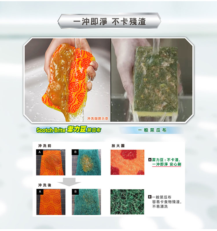 *一沖即淨:菜瓜布上的殘渣好沖洗。