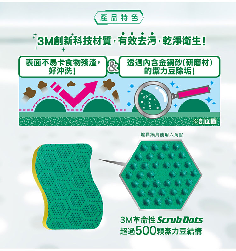 *有效去污:內含金鋼砂,高效除污的清潔力。