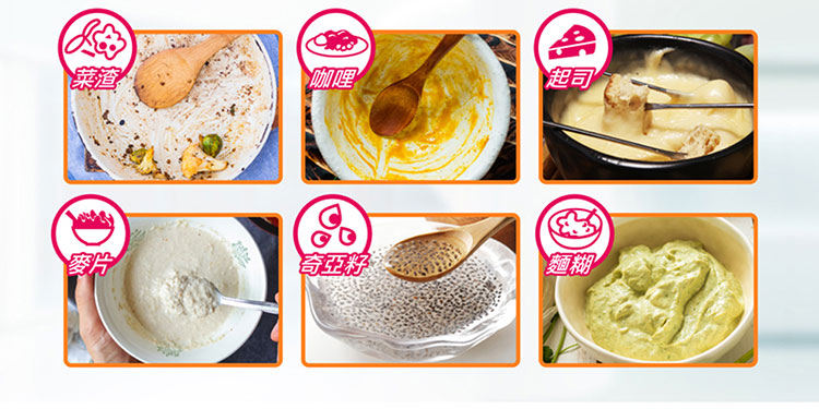 *不易卡食物殘渣:如菜渣,炒蛋,麵糊,起司,麥片,奇亞子….等,乾淨衛生。