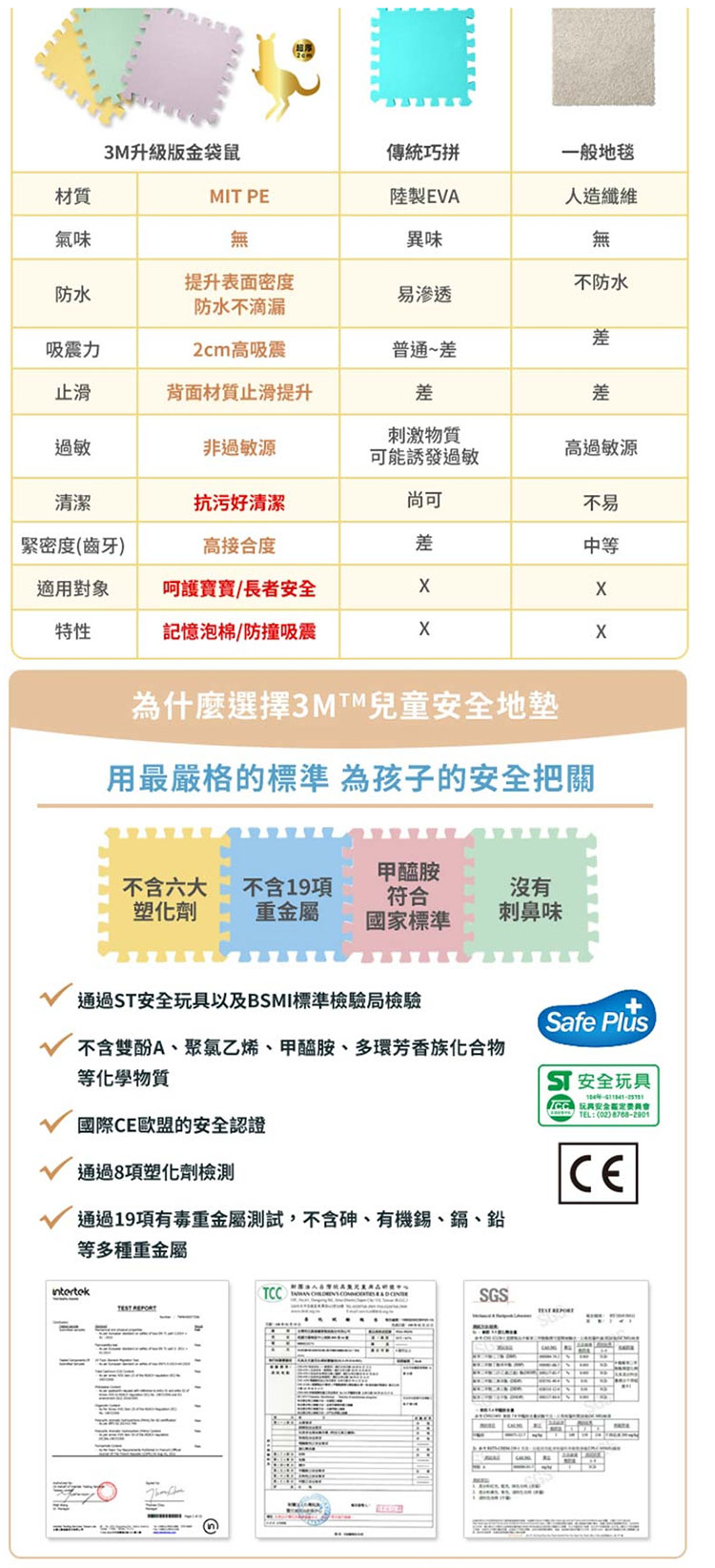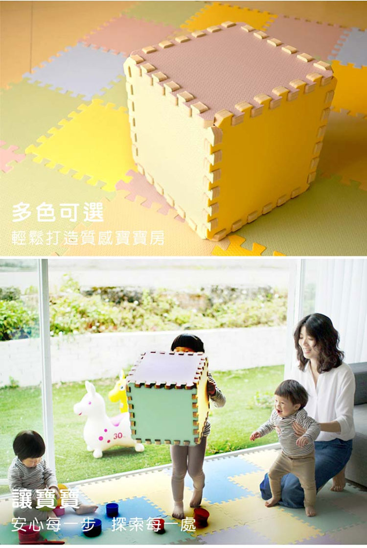 ◆使用PE(聚乙烯)材質,按壓後有如記憶枕的效果,會自動回復成原狀,具有不易變形的特性,父母可以放心的讓孩童在地墊上快樂的學習。