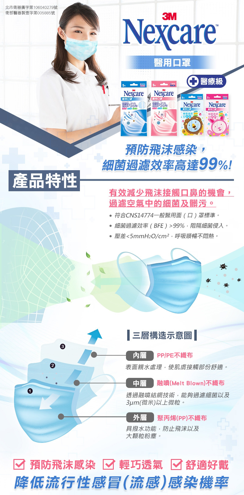 醫療器材許可證所載品名:3M醫用口罩(未滅菌)