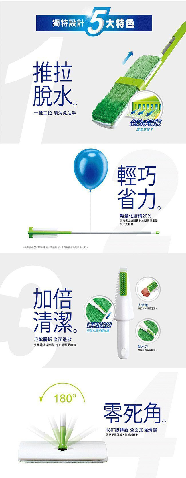 ★推拉脫水 髒布免手洗:刮水結構經歷測試20000次超強耐用。