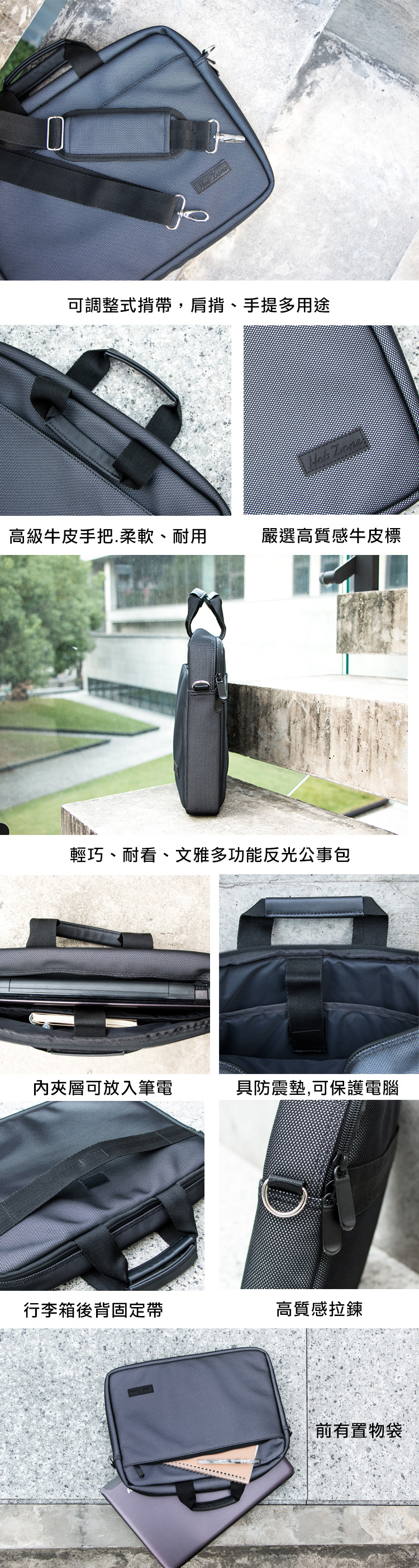 *HOT ZONE反光迷黑系列多功能反光公事包,為不同風格需求,可隨心變化手提、肩揹功能