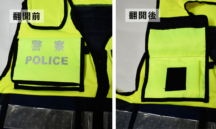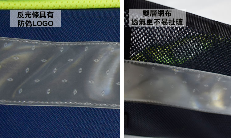 警察字樣採高週波壓合反光片,美觀安全質感兼具 ;採用雙層網布,更實穿、耐用,不易扯破,使用期限更加長。
