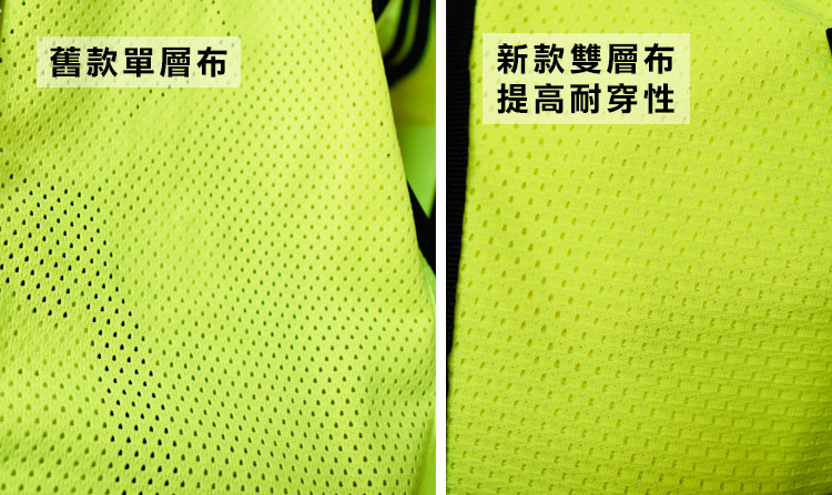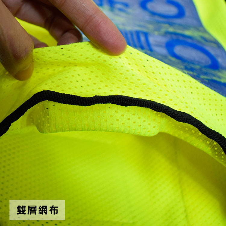 黃色全網透氣布質:採用色彩鮮明的亮螢光色,提高安全度。