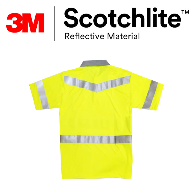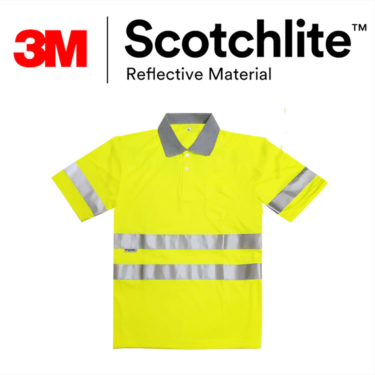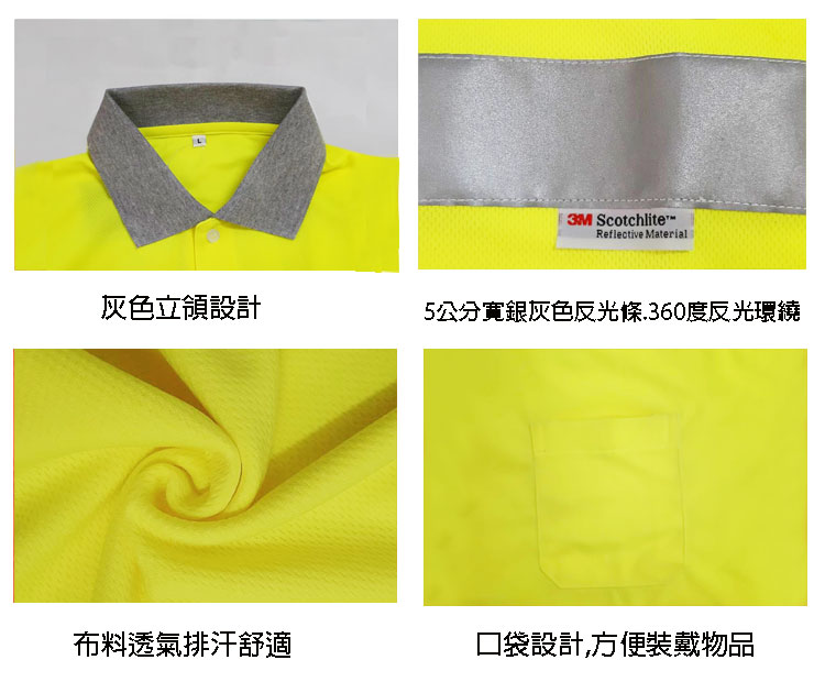 灰領螢黃反光條短袖口袋polo衫 3M Scotchlite Safetylite