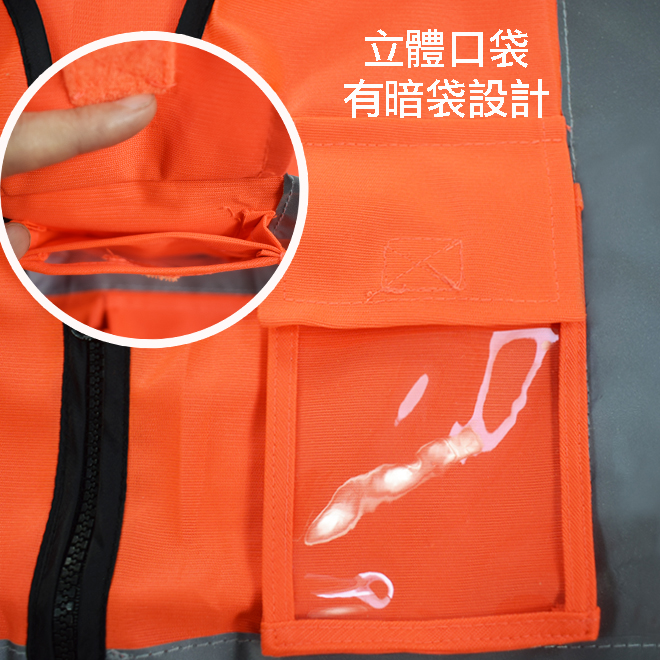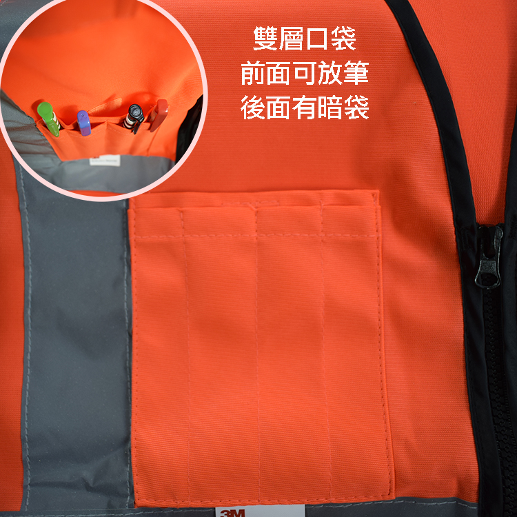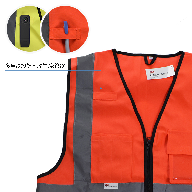 螢橘多口袋拉鍊反光安全背心 3M Reflective Material