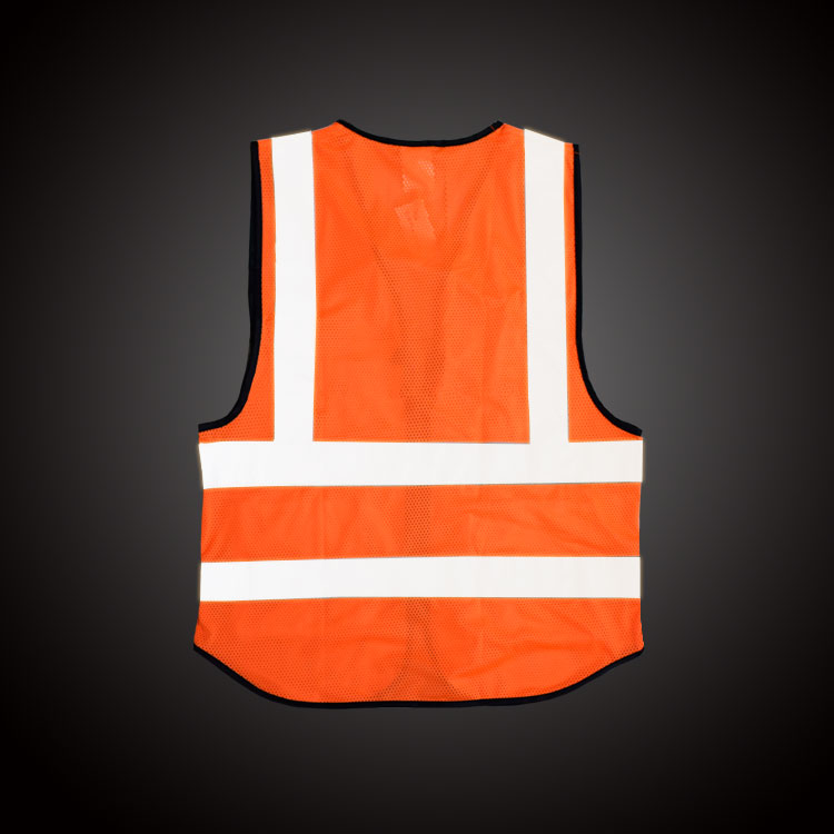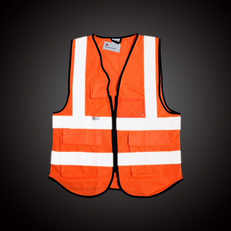 螢橘多口袋拉鍊反光網布安全背心 3M Reflective Material